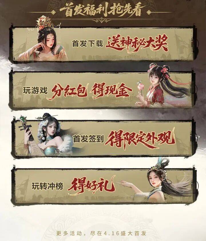 除了以上福利,《三国:天下归心》公测后九游APP还将带来更多首发好礼,只待主公们入席!