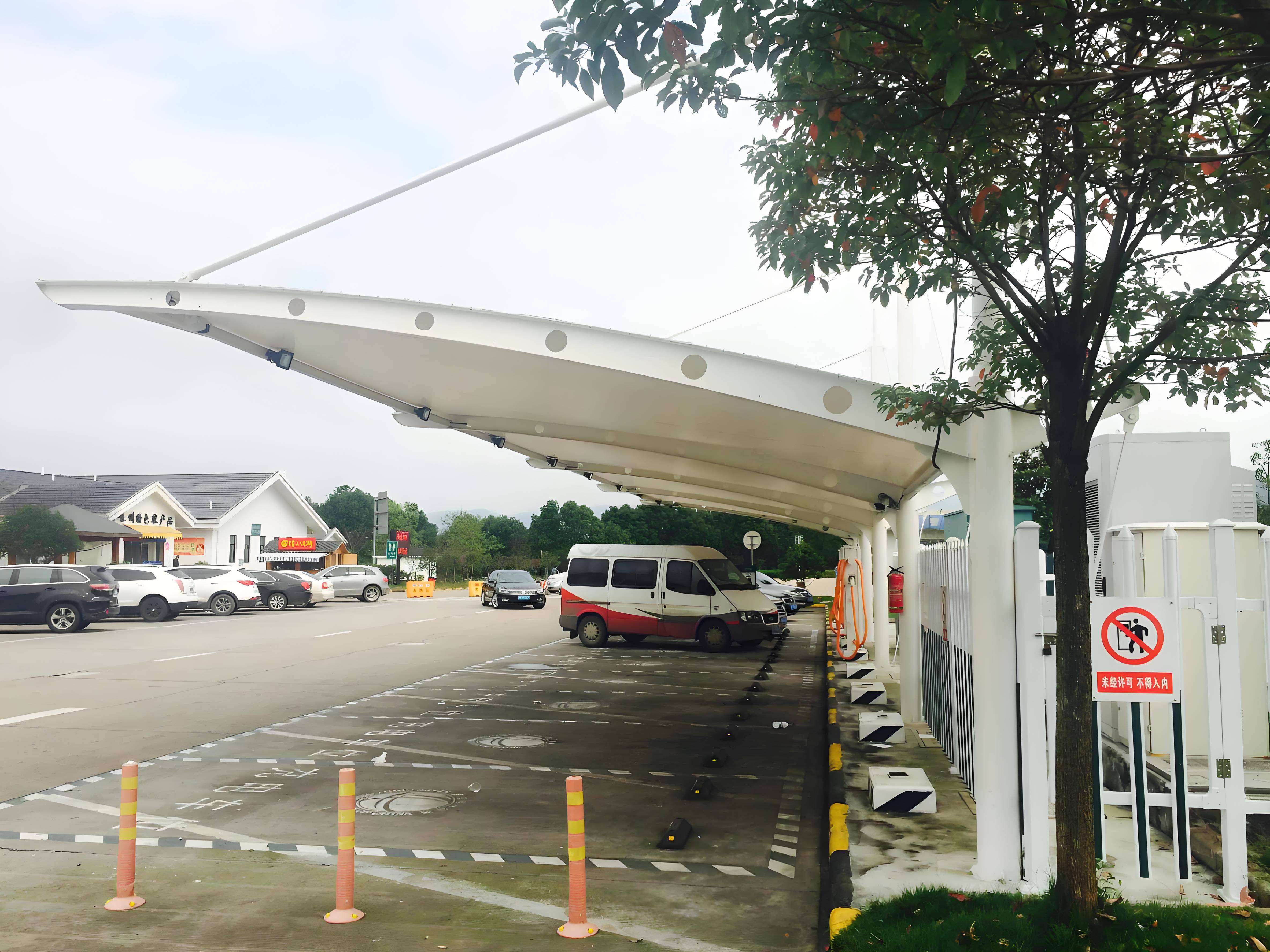 膜材料具有良好的透光性,白天可以自然采光,减少照明能源的消耗。同时,透光性还能使车棚内部形成柔和的光线环境,避免车辆长时间暴露在阳光下而受到损害。