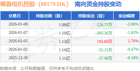 九游娱乐,九游娱乐官网,九游app,九游下载安卓,九游体育,九游,九游下载,九游体育娱乐,九游体育app,九游体育网页版,九游真人,九游棋牌,九游捕鱼,九游娱乐靠谱吗,九游体育官网,九游官网证券之星消息,1月8日南向资金减持226.75万股德昌电机控股(00179.HK)。近5个交易日中,获南向资金减持的有4天,累计净减持326.65万股。近20个交易日中,获南向资金减持的有13天,累计净减持467.57万股。截至目前,南向资金持有德昌电机控股(00179.HK)1.08亿股,占公司已发行普通股的11.52%。