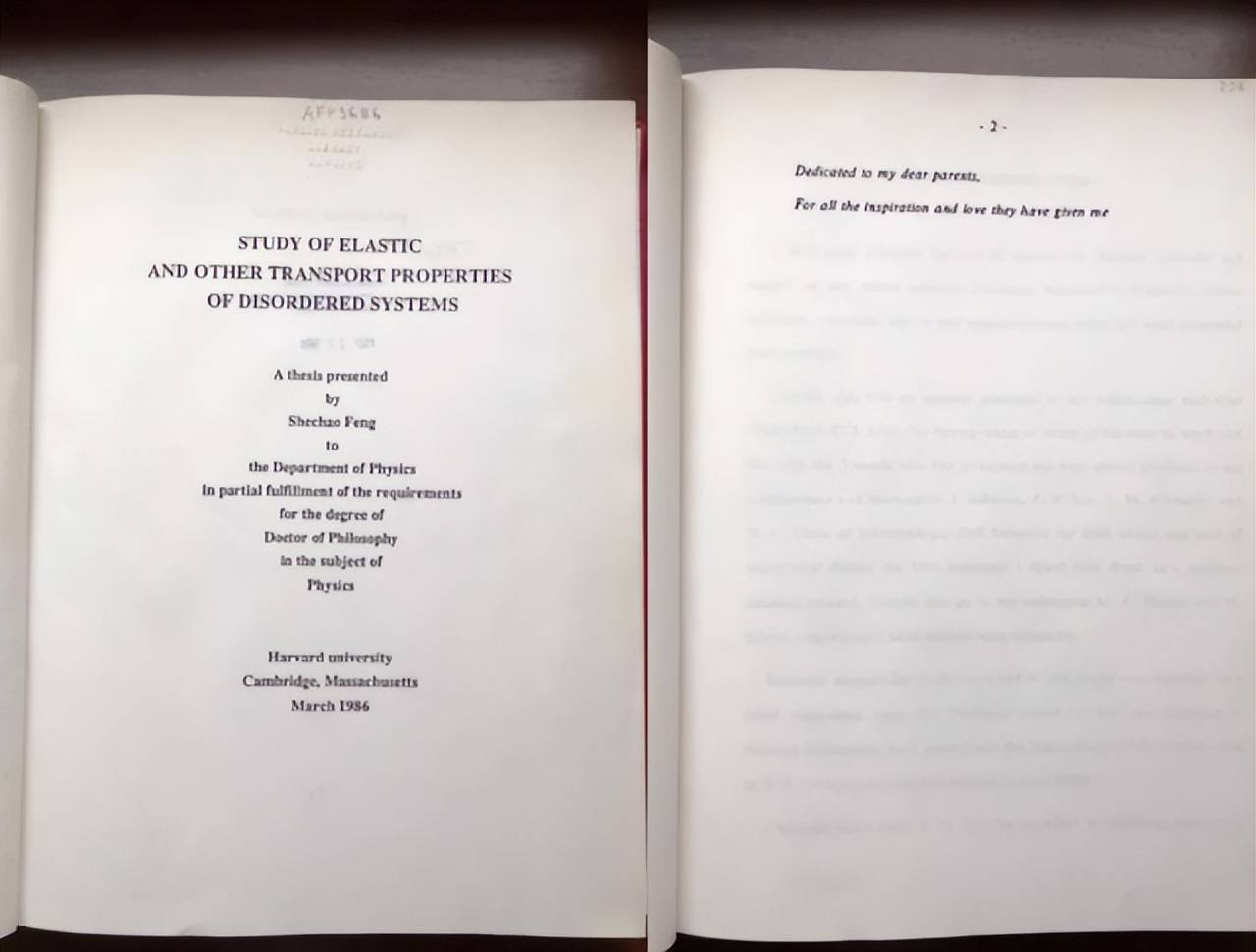 到了1983年,冯奚乔开始陆续在物理期刊上发表凝聚态理论方面的文章,展现他在物理学上的极高造诣。