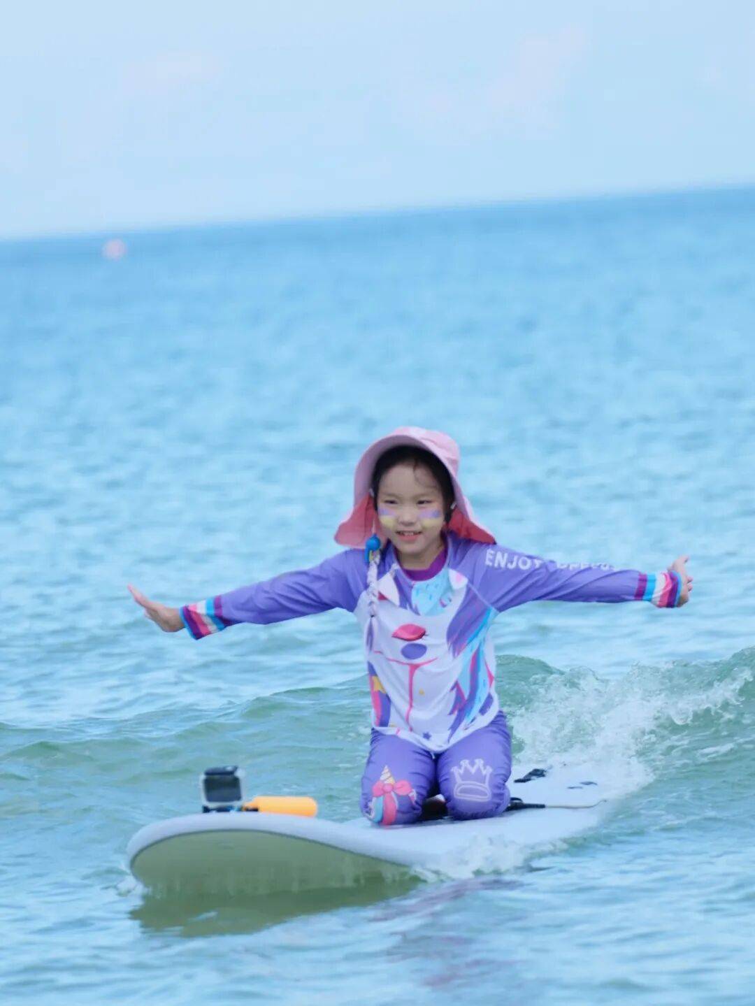 2023年暑假,周子翕一家去三亚玩,结果她迷上了冲浪,硬是改变了度假行程,考了全国冲浪运动水平一星L2等级证书才回家;去年9月举行的斯巴达勇士儿童赛成都站,周子翕针对性练了十来天就去报名参赛,结果拿了女子精英(9-11岁)组冠军,12月的全国总决赛上,周子翕又斩获第7名的好成绩;在学校,周子翕还是年级女子400米的速度担当,跑5公里甚至能达到4分半的配速。