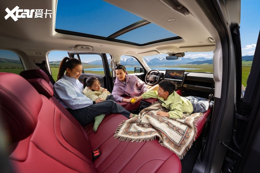 5 座版车型791L 超大后备厢容积,搭配45 处人性化储物空间从容包揽全家所需,玩具、户外帐篷、露营装备皆可分区收纳、整齐规整,告别杂乱拥挤。后排座椅纯平放倒,瞬间变身为宽敞舒适的“移动大床房”,露营休憩、短途午休、临时歇脚主打一个自在惬意。内饰延续高端质感,熔岩红配色搭配软包门护板,触感温润亲肤,让孩子在后排自在玩耍、倚靠、触碰,全程不用担心磕碰受伤,全家出行更舒心。